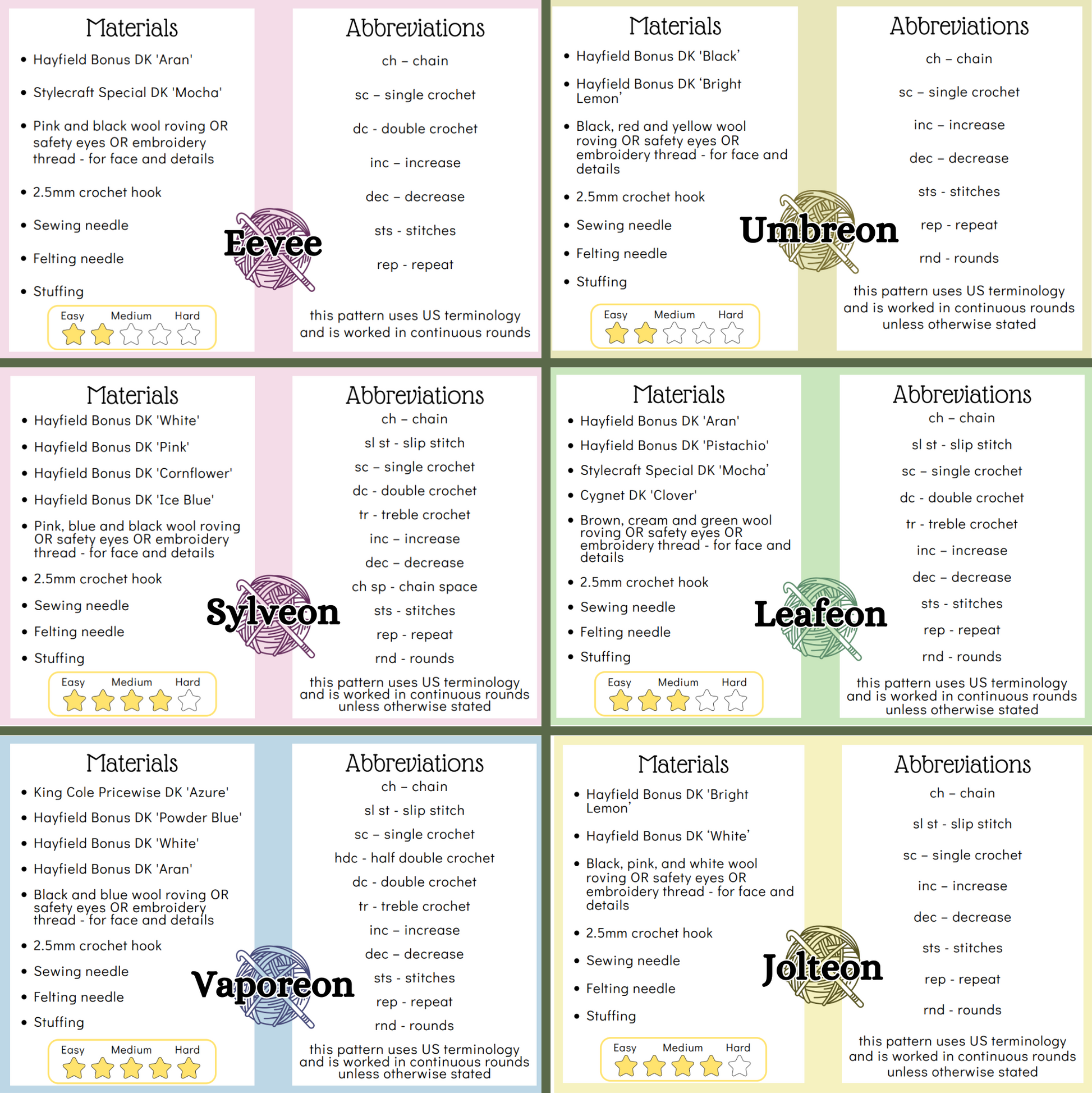 This is a listing for a crochet PDF pattern bundle of 9 little buddy patterns in total! This 100 page pattern bundle will walk you through from the beginning to the end of the construction of each plush, with plenty of pictures and directions to help you along! You will need to know how to do a slip stitch, single crochet, increase, decrease, double crochet, half double crochet, treble crochet, chain, make a magic ring and know how to crochet around a chain to complete the patterns in this bundle. Please note that the skill range varies from pattern to pattern - please see the listing pictures where all difficulty levels are listed! All patterns are written in English, and with US terms.